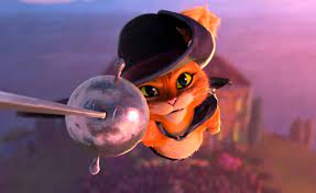 Ahora hablemos de la película…Como algunos sabemos hay un refrán que dice que los gatos tienen 9 vidas. Éste como en el cuento original es un gato antropomorfo (sig: que tiene forma o apariencia humana) lo que le permite hablar, tener un vestuario (sombrero, cinto, botas y una espada) y realizar estrategias para salir bien librado de cada situación. Con su astucia, coraje y buen humor se hace amigo del pueblo y es admirado por los humanos sobre todo por su capacidad de diversión mezclada con la valentía, al enfrentar los peligros que acechan a una comunidad. Pero al parecer en su última batalla con un troll gigante de las montañas y luego de que recibe un gran golpe de una campana, al despertar del mismo se le anuncia que es su última vida.